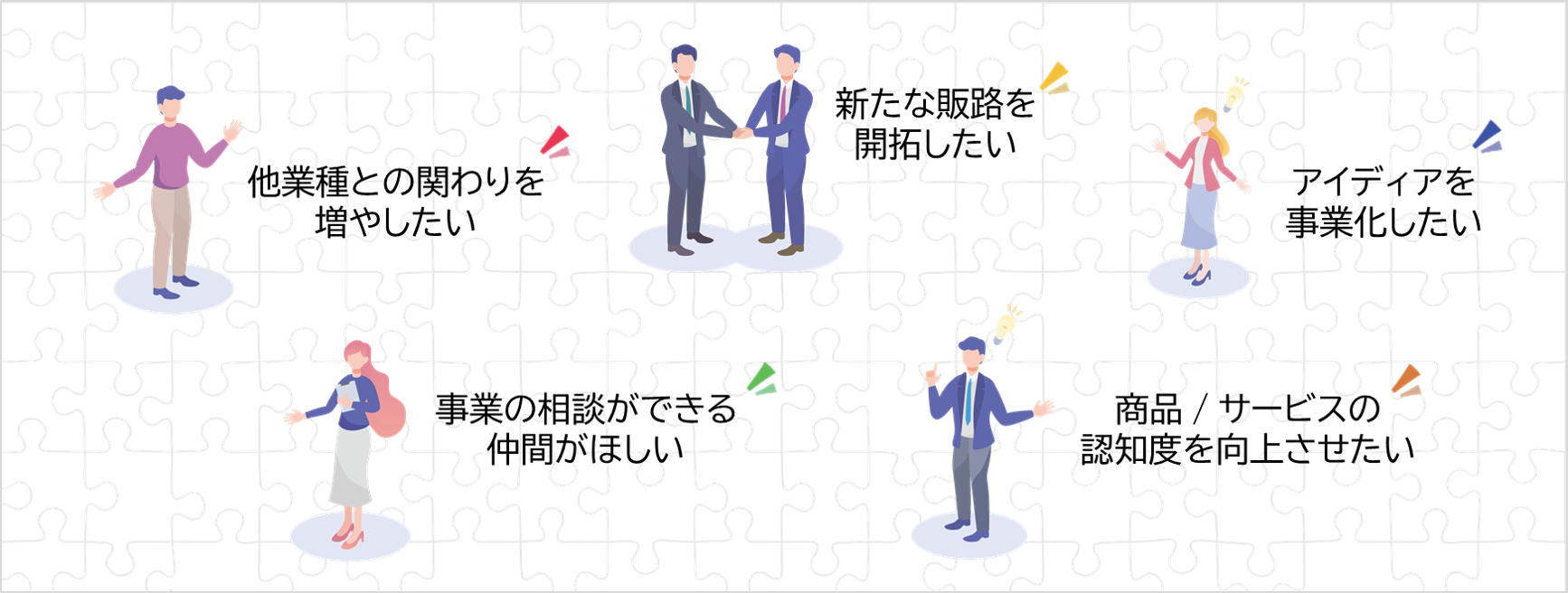 「こんな人と話をしたい」、「こんな企業と商談してみたい」といった会員の方々の自発的な行動を運営スタッフがサポート。受発注につながる商談はもちろん、SDGs推進や地域貢献につながる異業種コラボレーションも続々と生まれています。